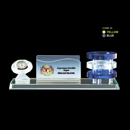 Crystal Desktop Item-Clock, Card Holder, Pen Holder