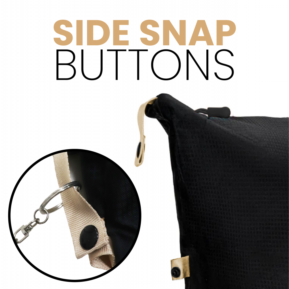 Side snap buttons to hang accessories.