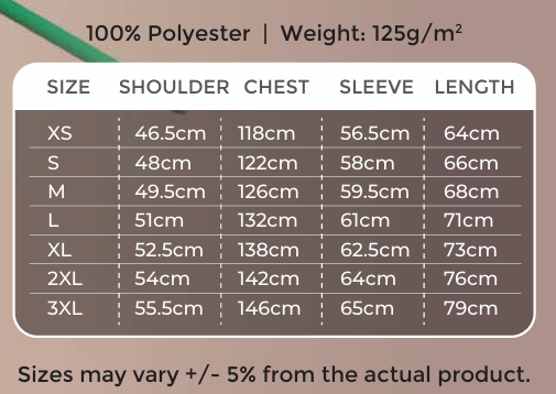 Sizes: XS – 3XL