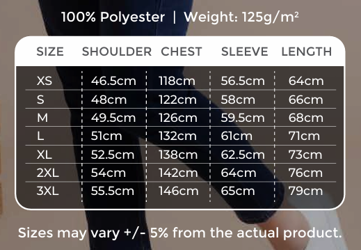 Size: XS – 3XL